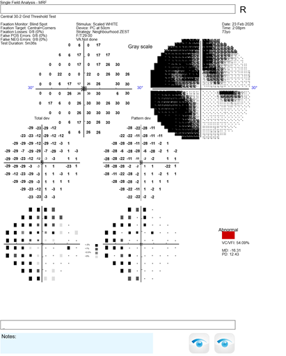 MRF software is registered with the Therapeutic Goods Administration (TGA) in Australia, CE Mark (EU), UKCA (UK) as a perimetry device.